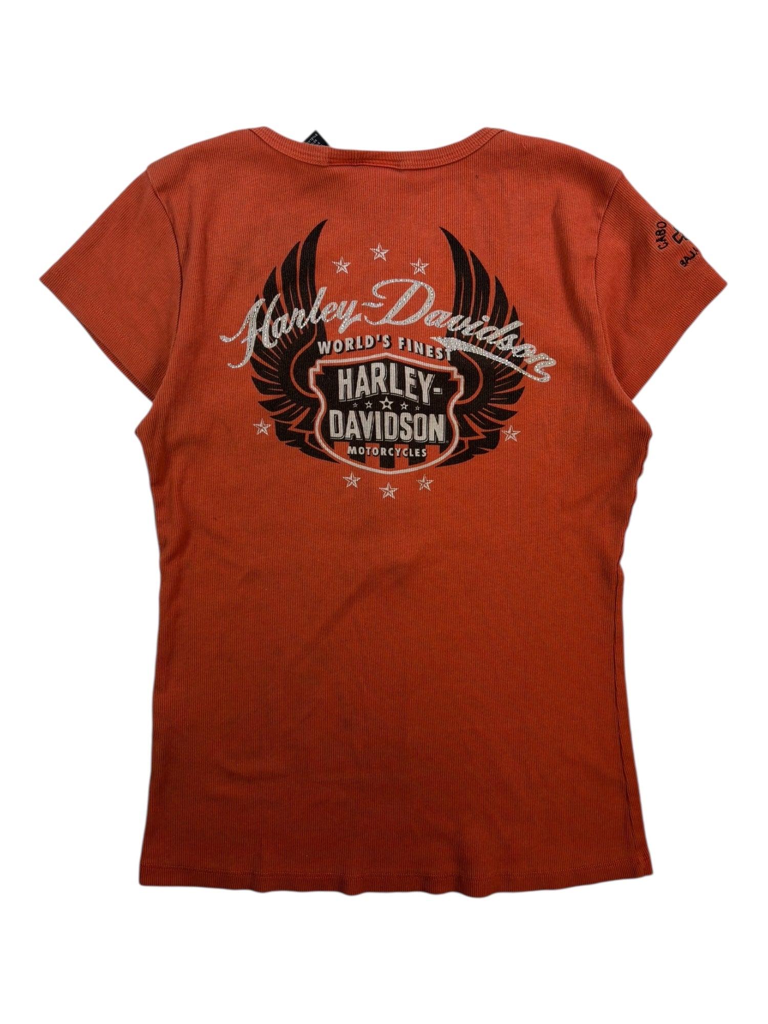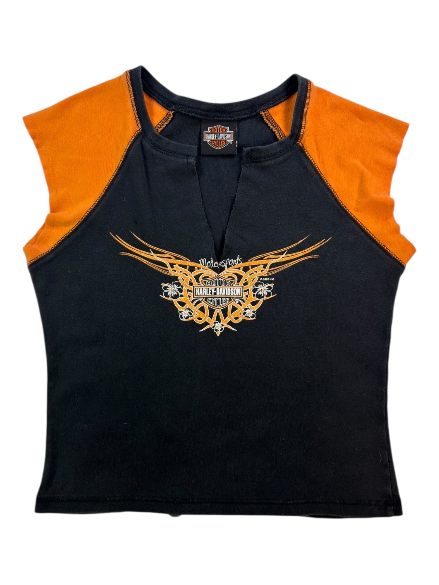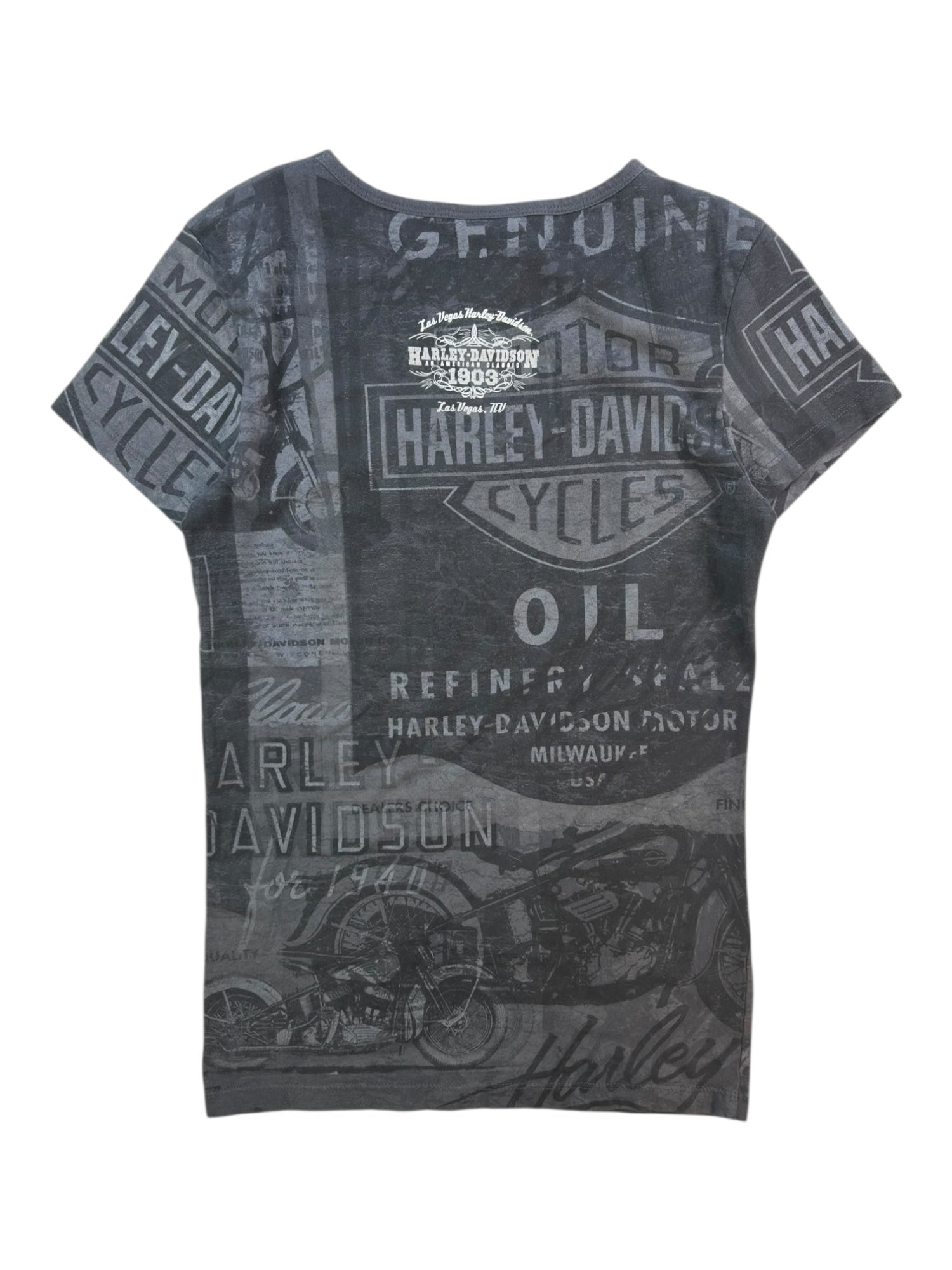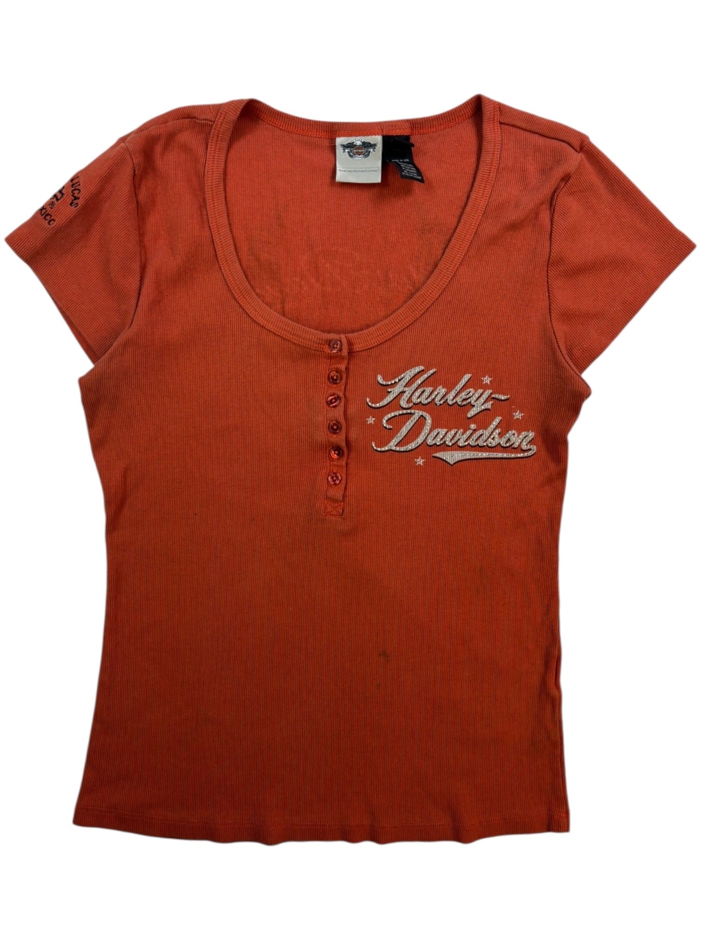 (S/M) Harley Davidson Glitter Graphic V-Neck Baby Tee