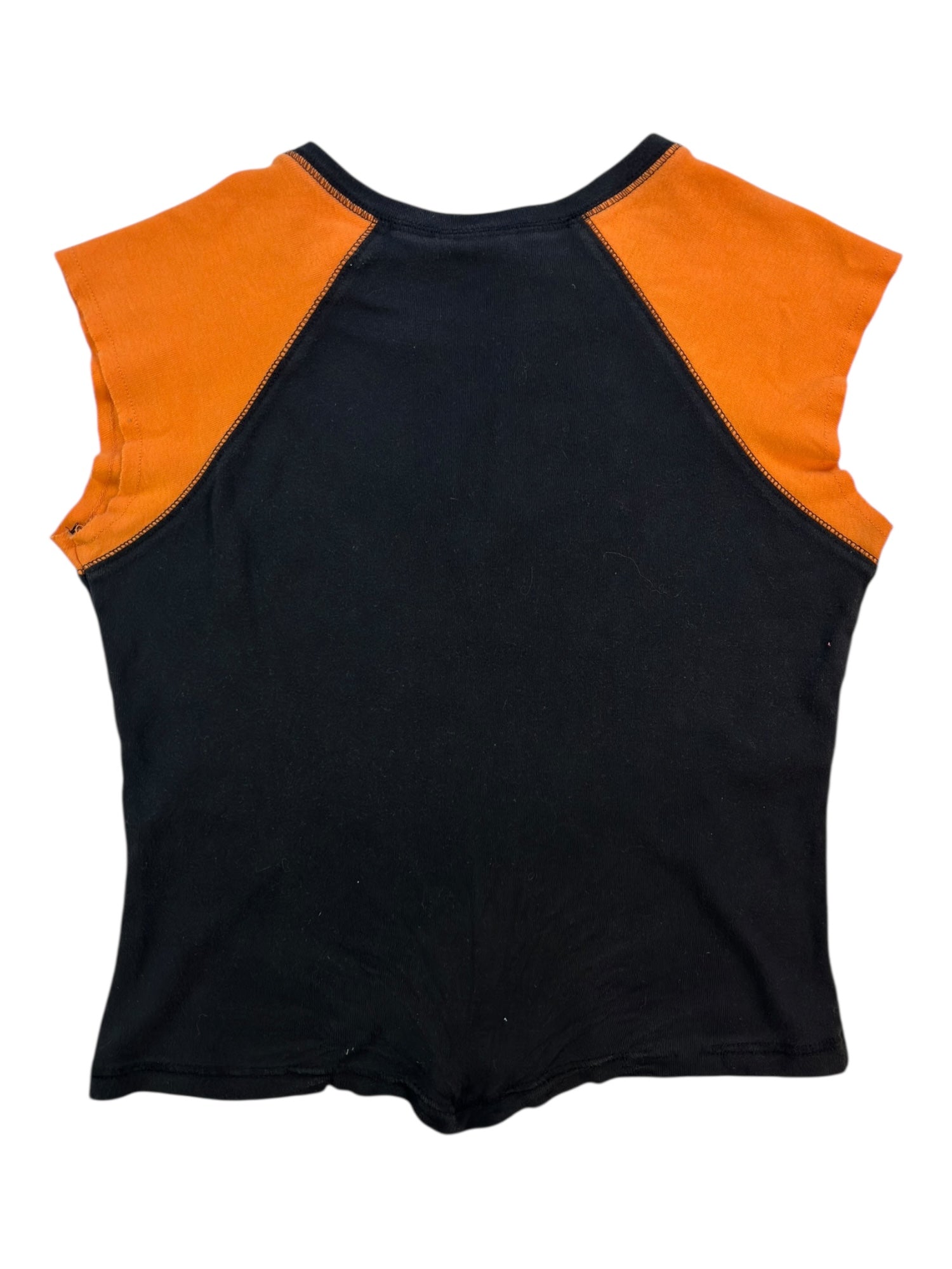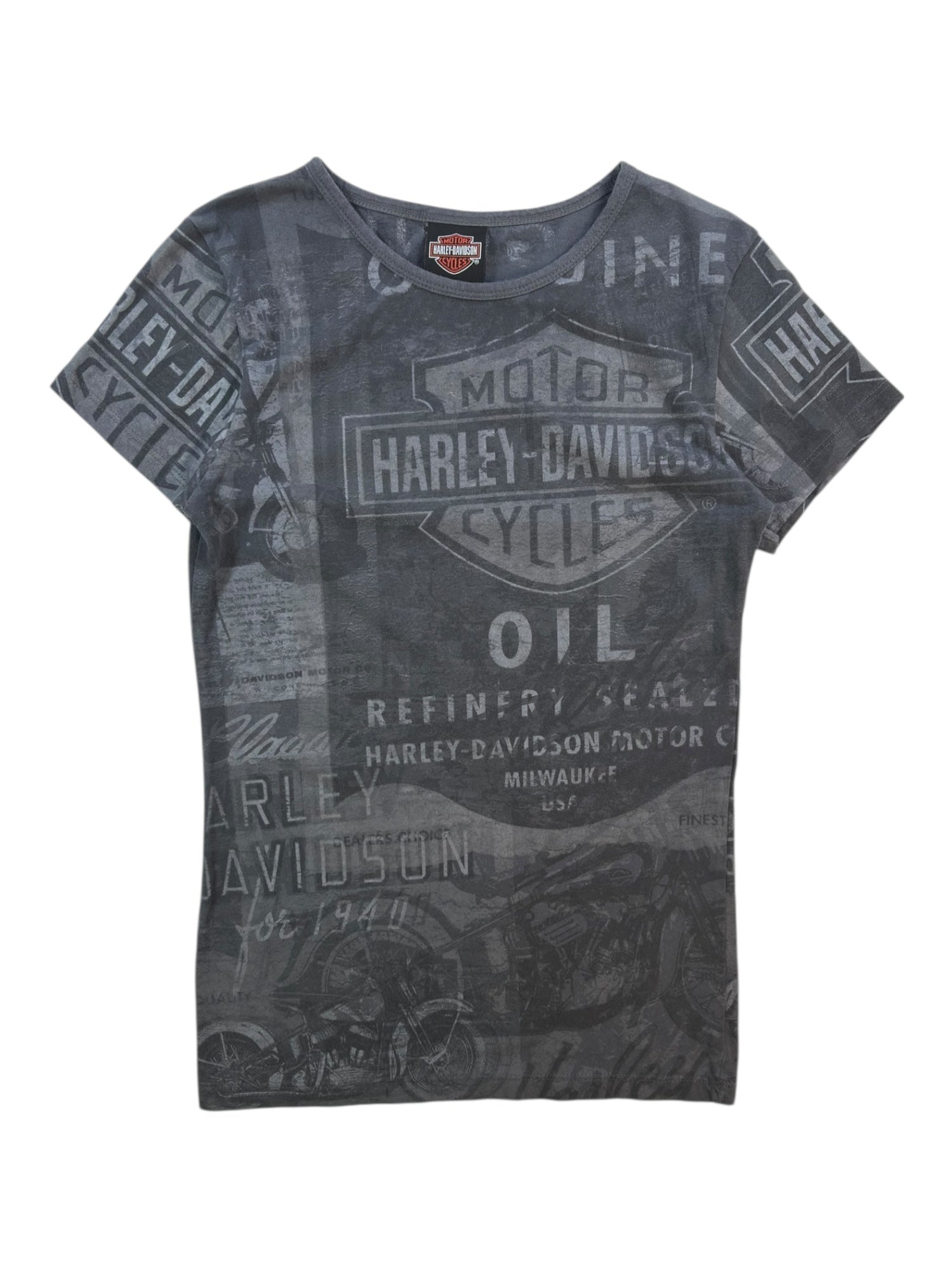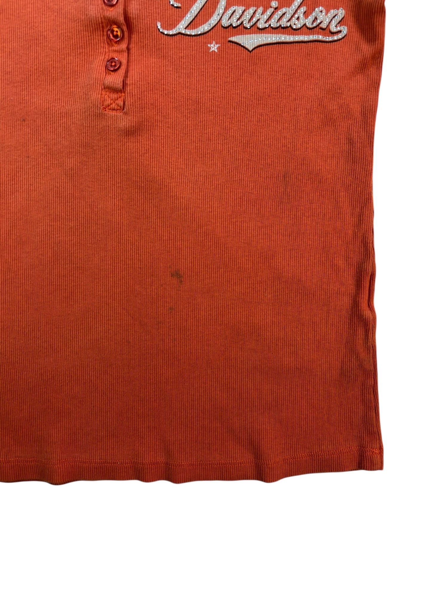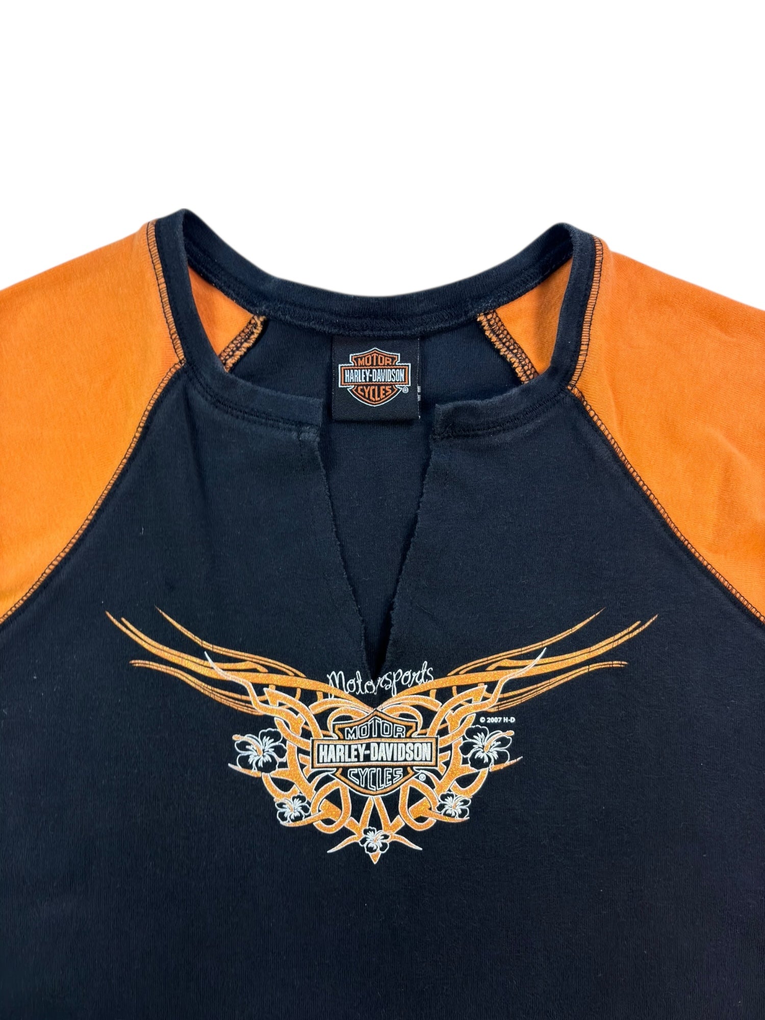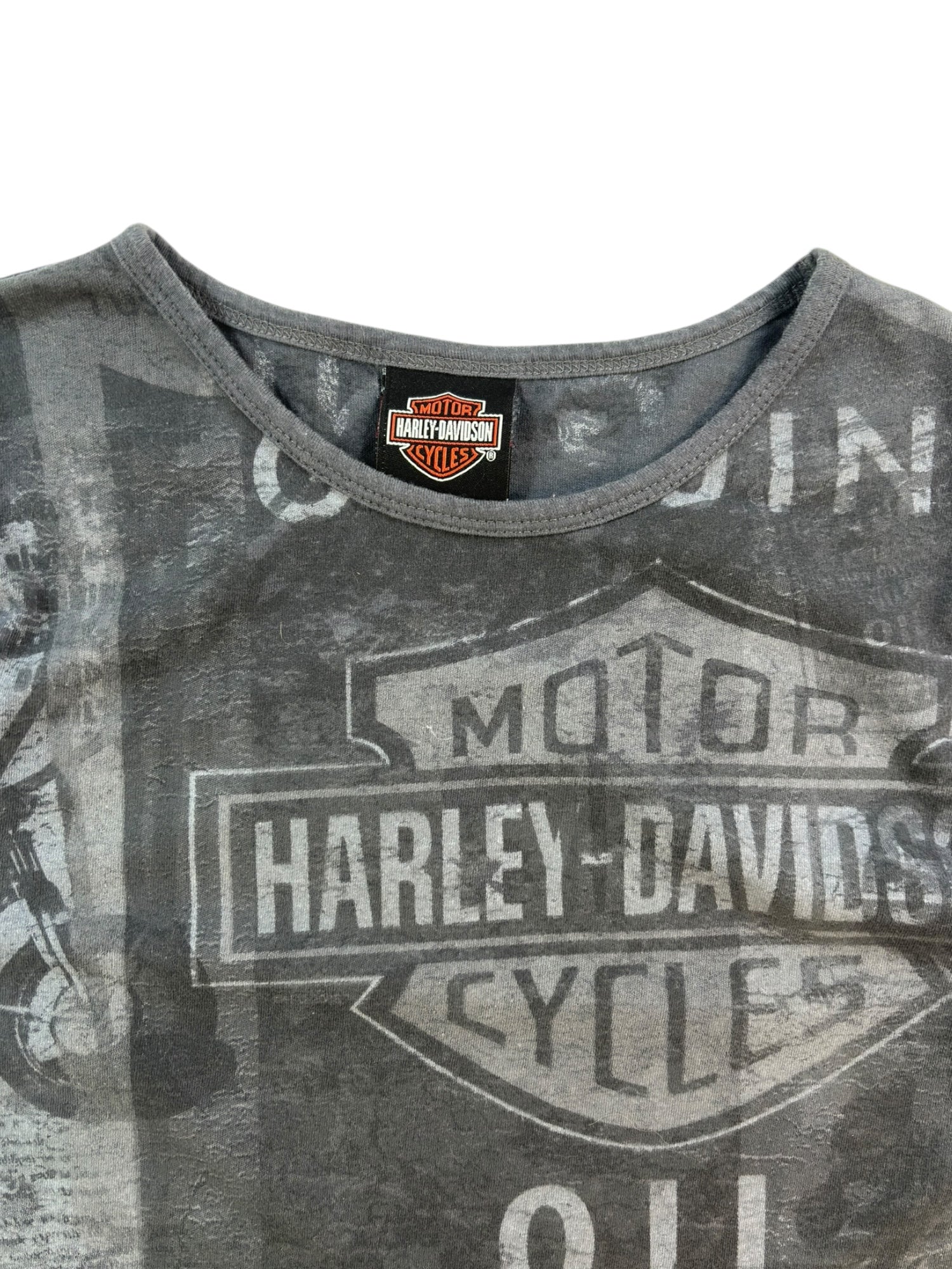 (S/M) Harley Davidson Glitter Graphic V-Neck Baby Tee