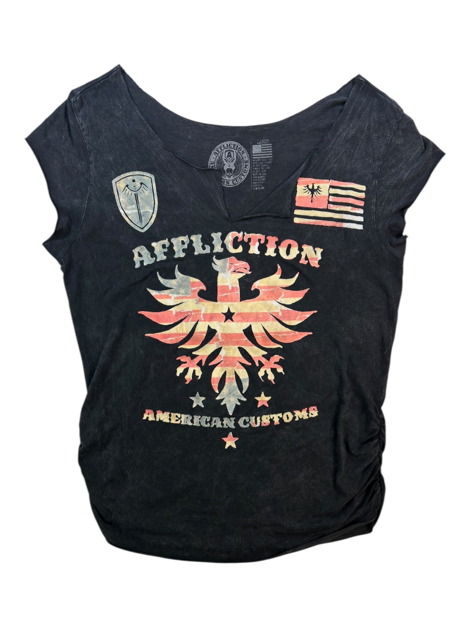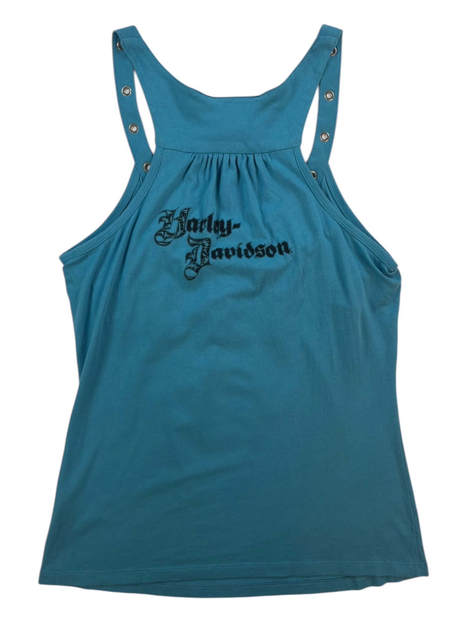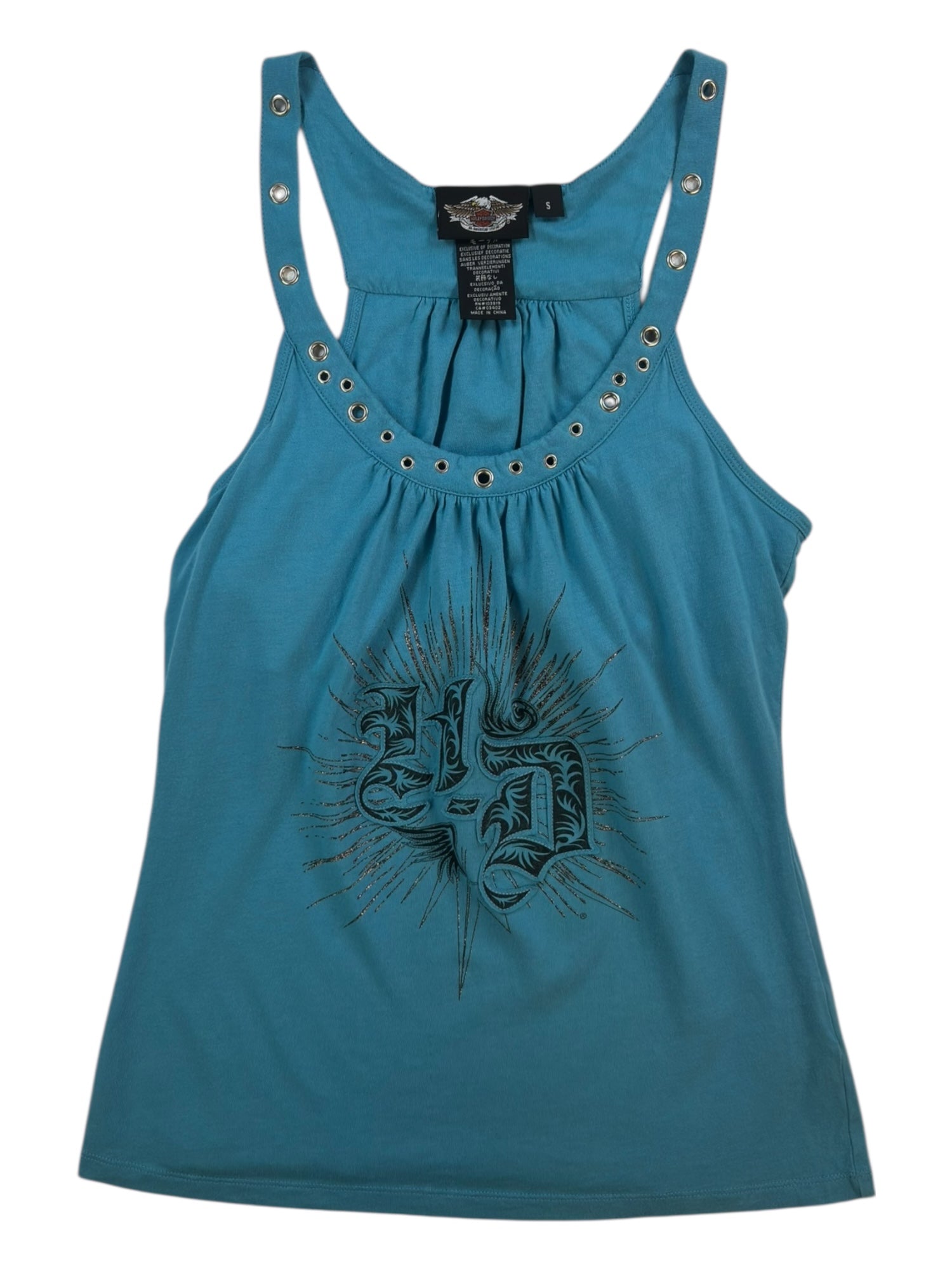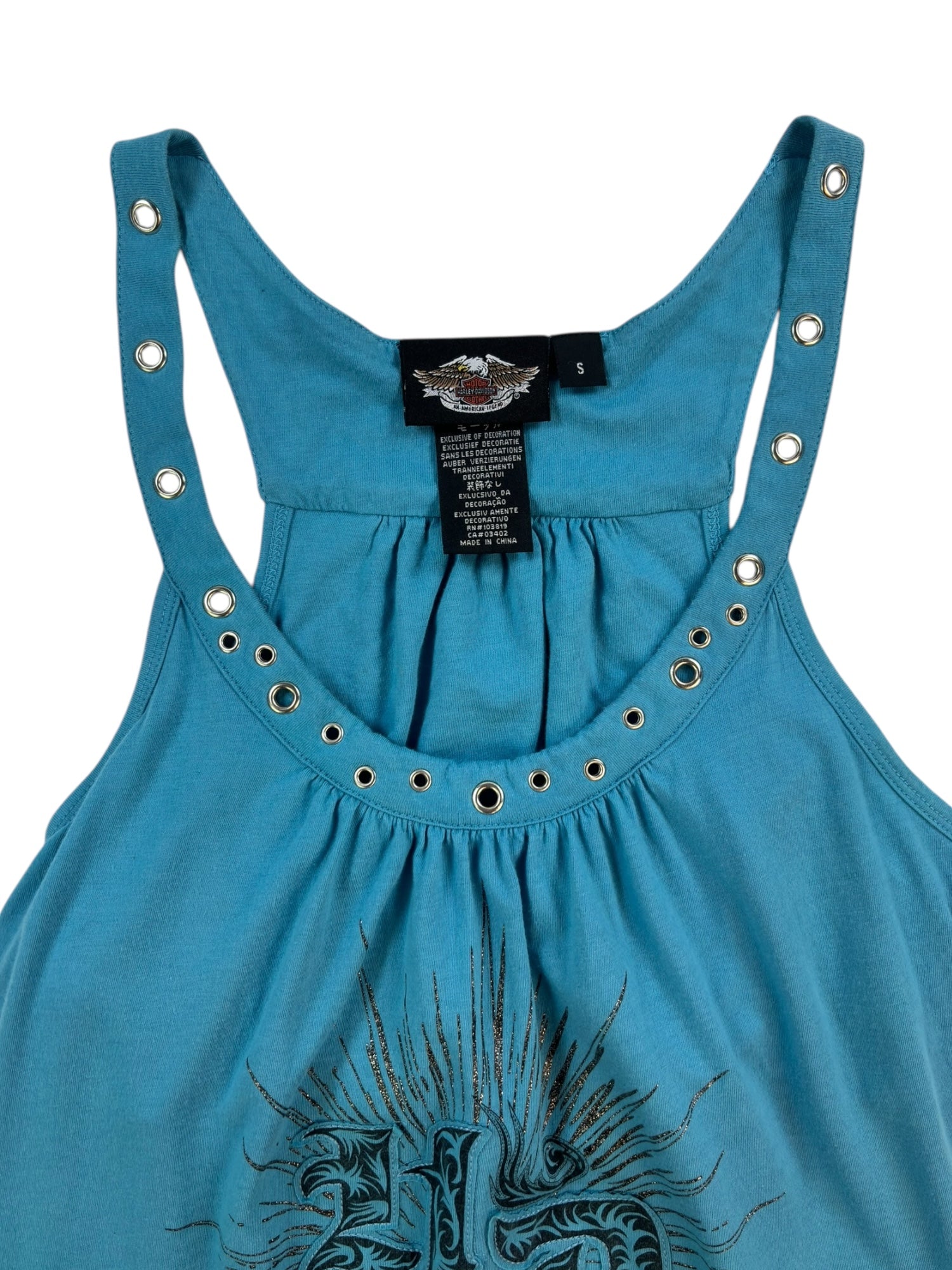 (S/M) Harley Davidson Glitter Graphic V-Neck Baby Tee