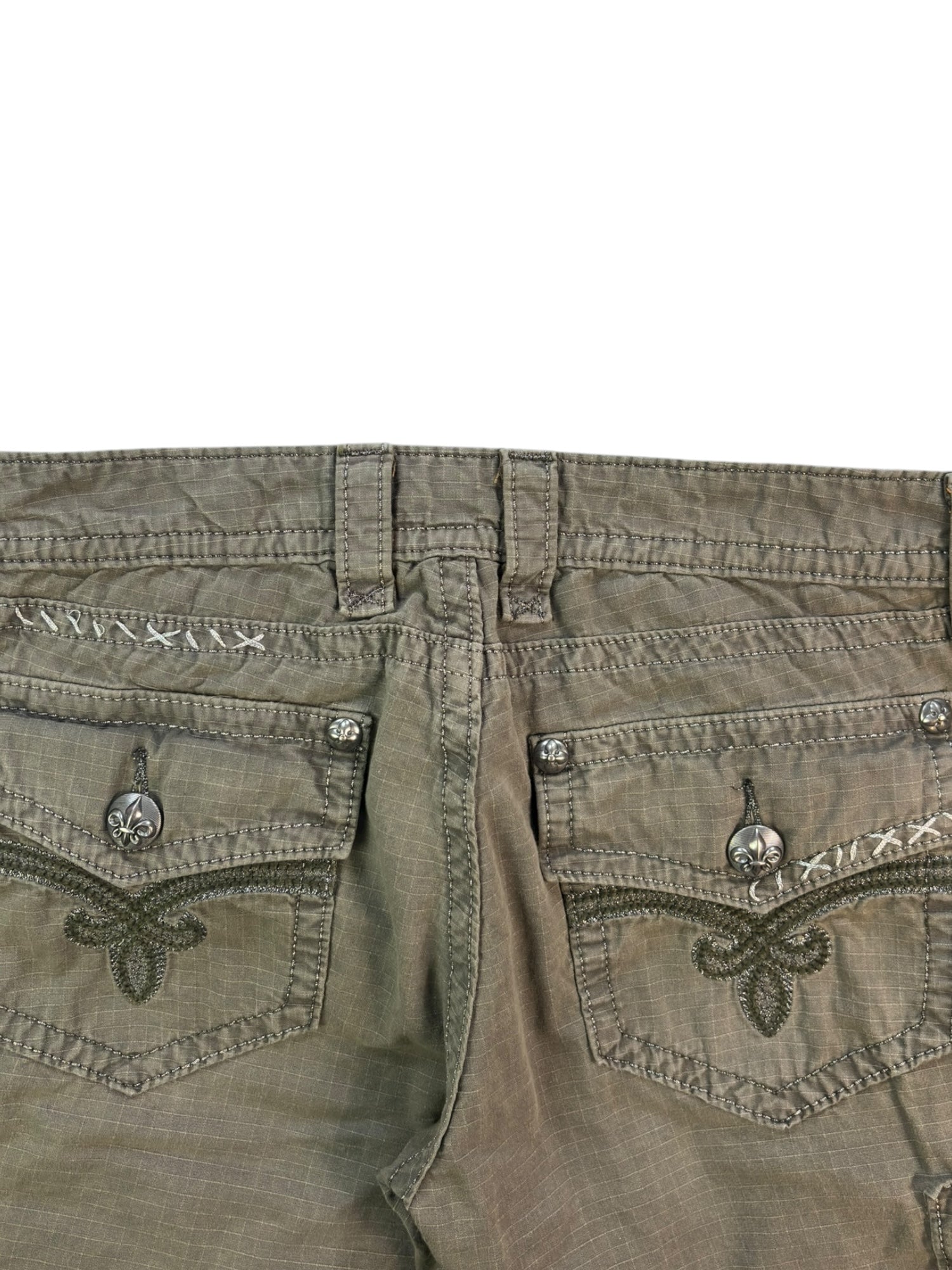 (28) Dragonfly Leather Detailed Flames Pocket Flared Jeans