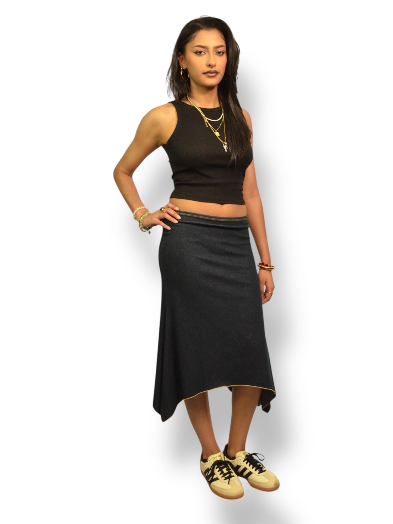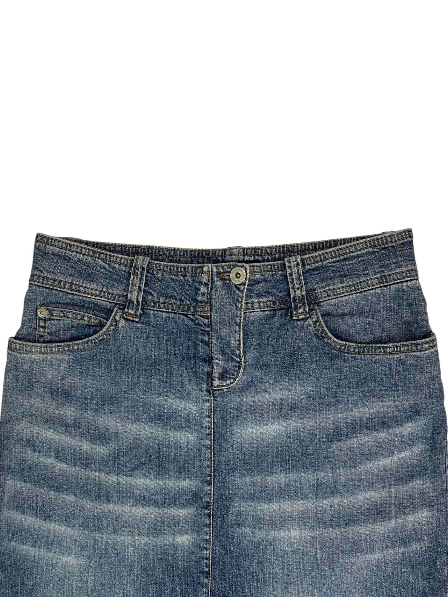(27) Vintage Sirens Faux Denim Midi Skirt