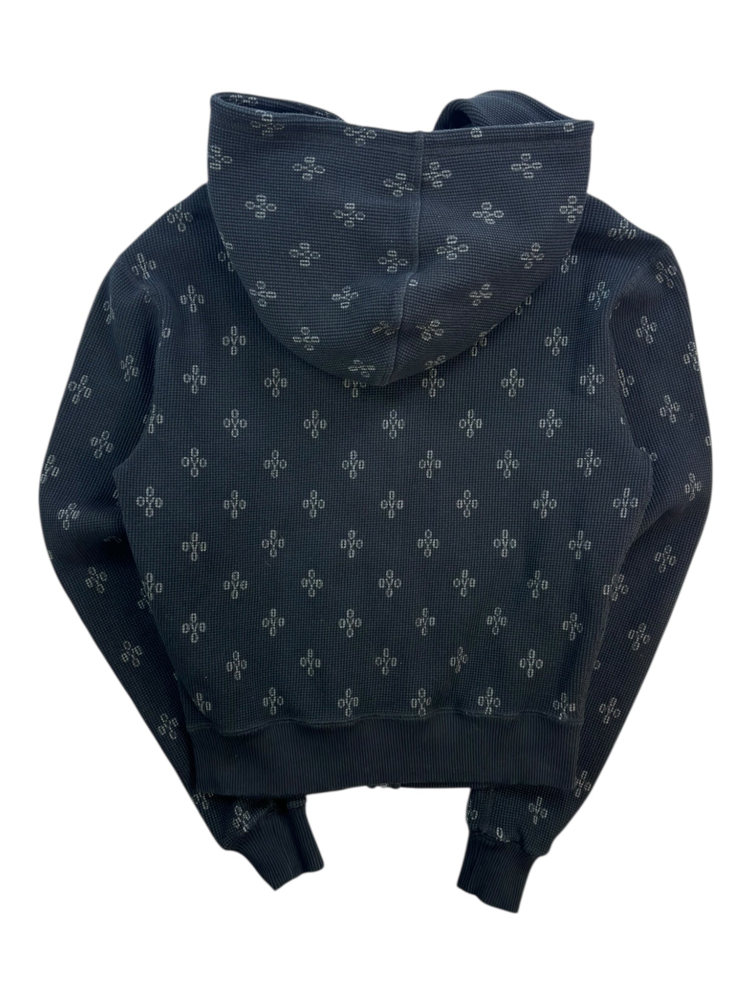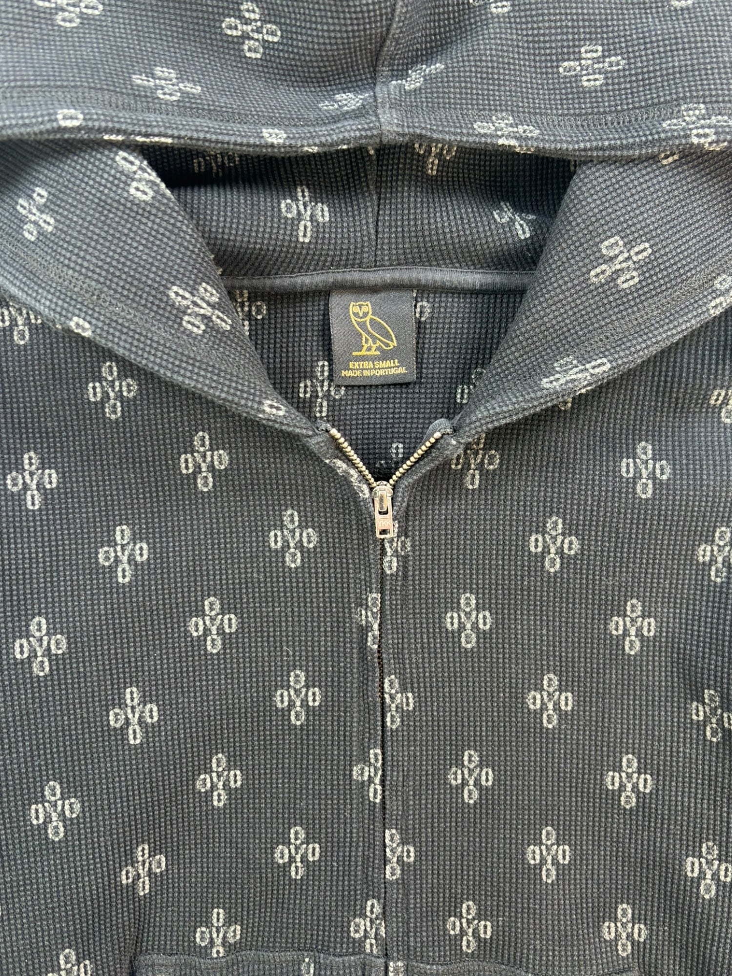 (XS) Ovo Monogram Waffle Knit Zip Up Hoodie