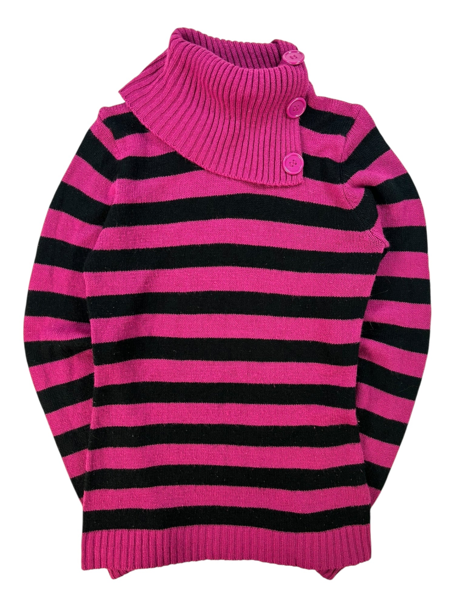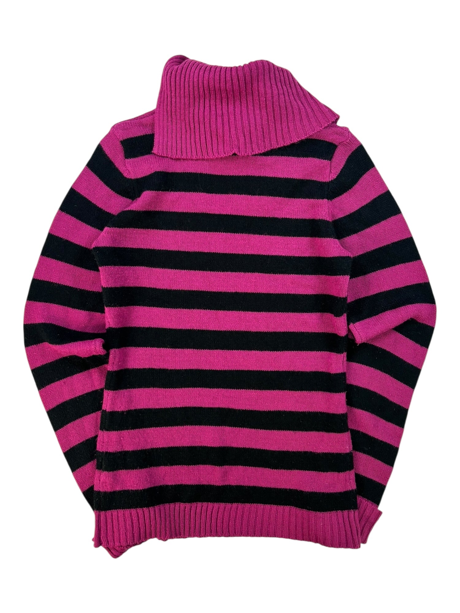(S) Y2K Pink & Black Stripped Turtle-neck Sweater