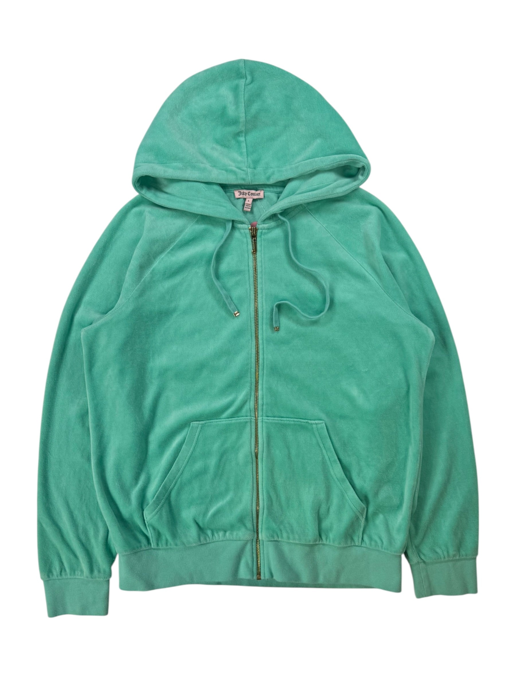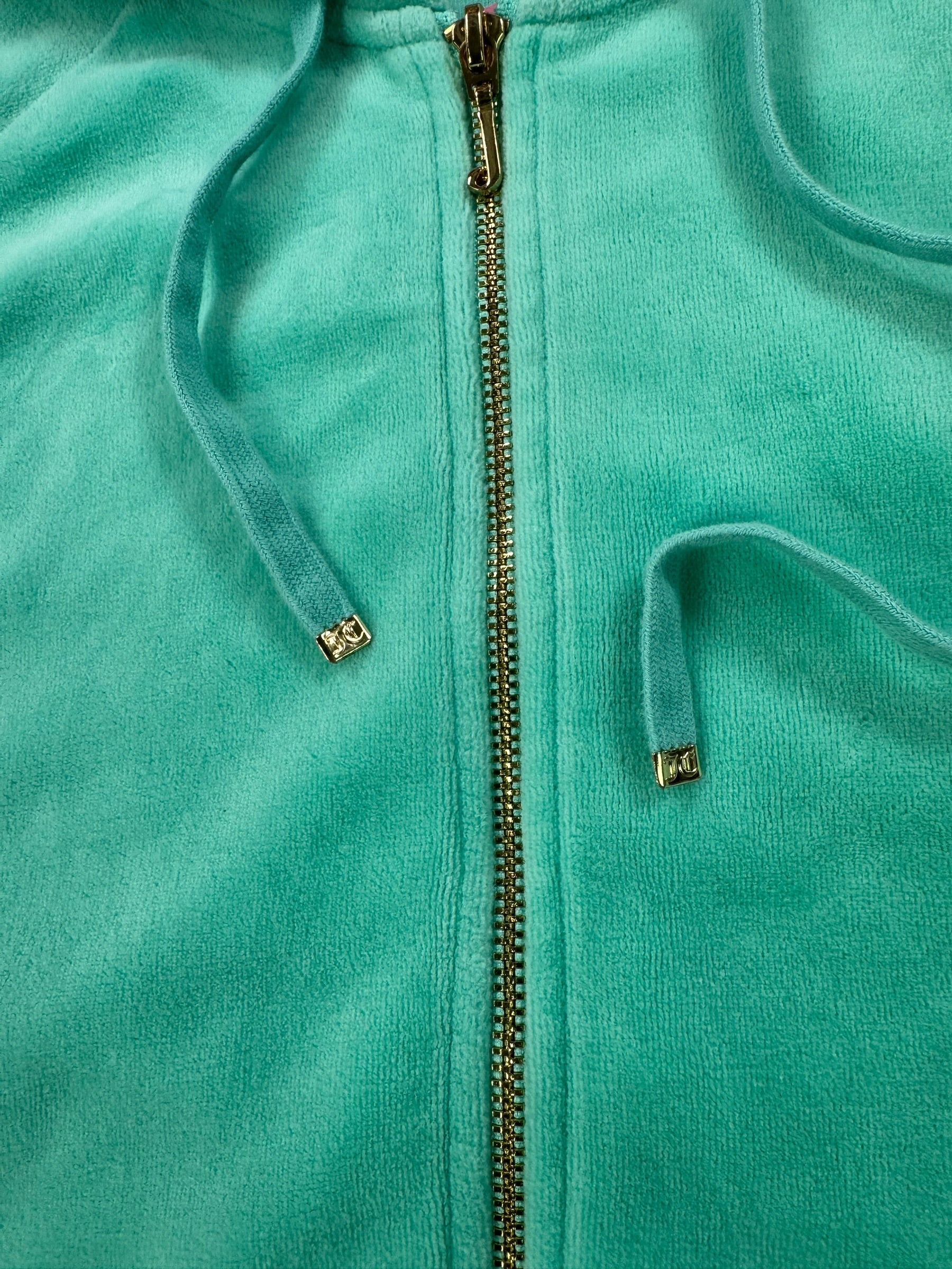 (L/XL) Aquamarine/Gold Juicy Couture Velour Zip-up Hoodie