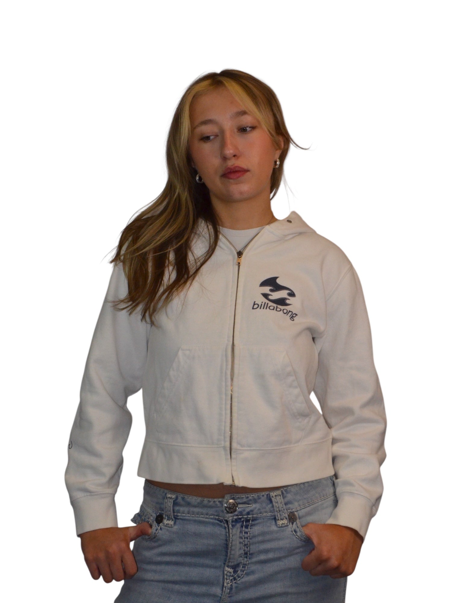 (M) Y2k Billabong White Zip Up Hoodie