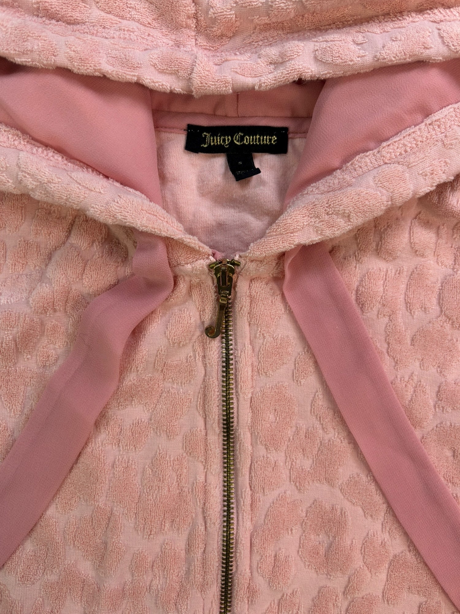 (S) Light Pink Leopard Printed Juicy Couture Zip-up Hoodie