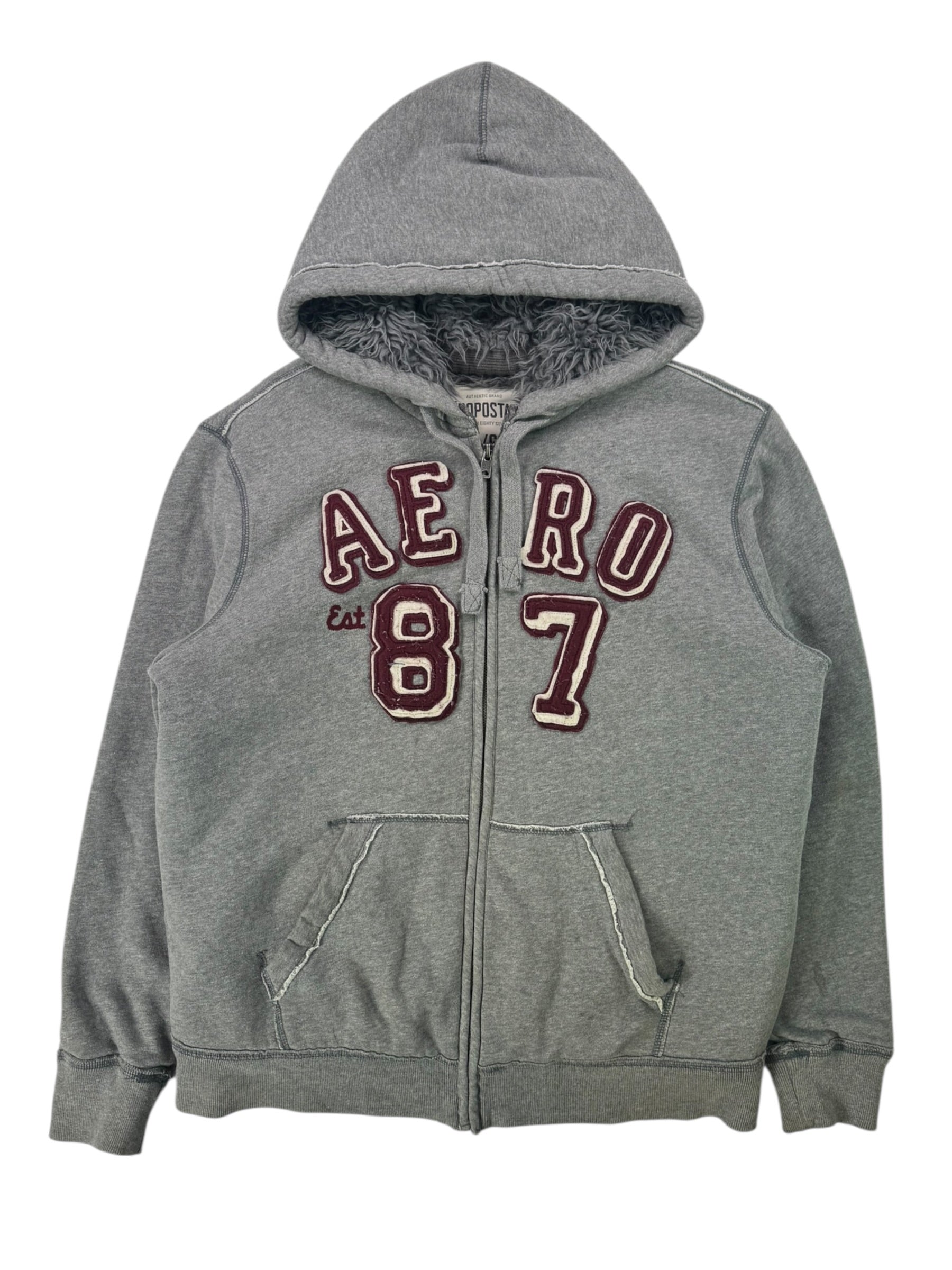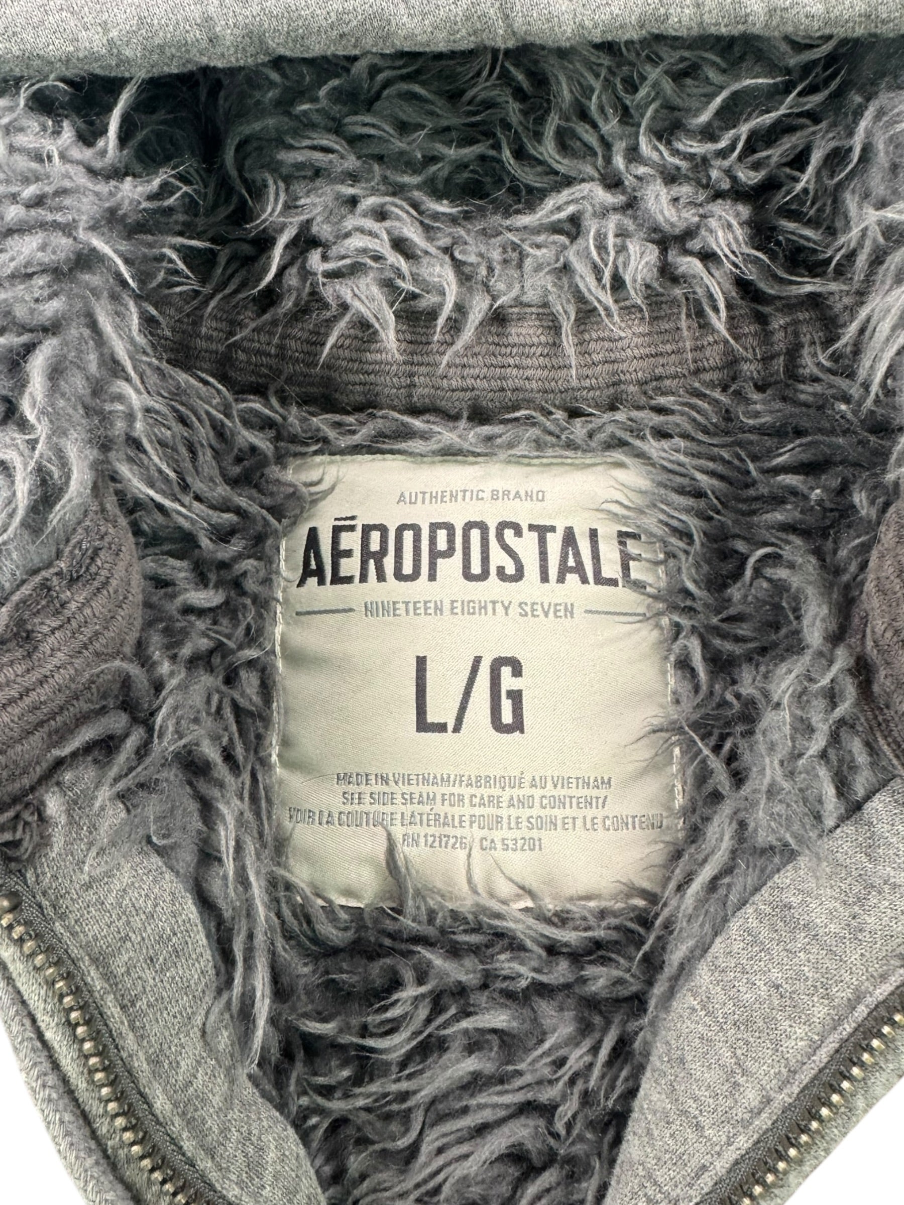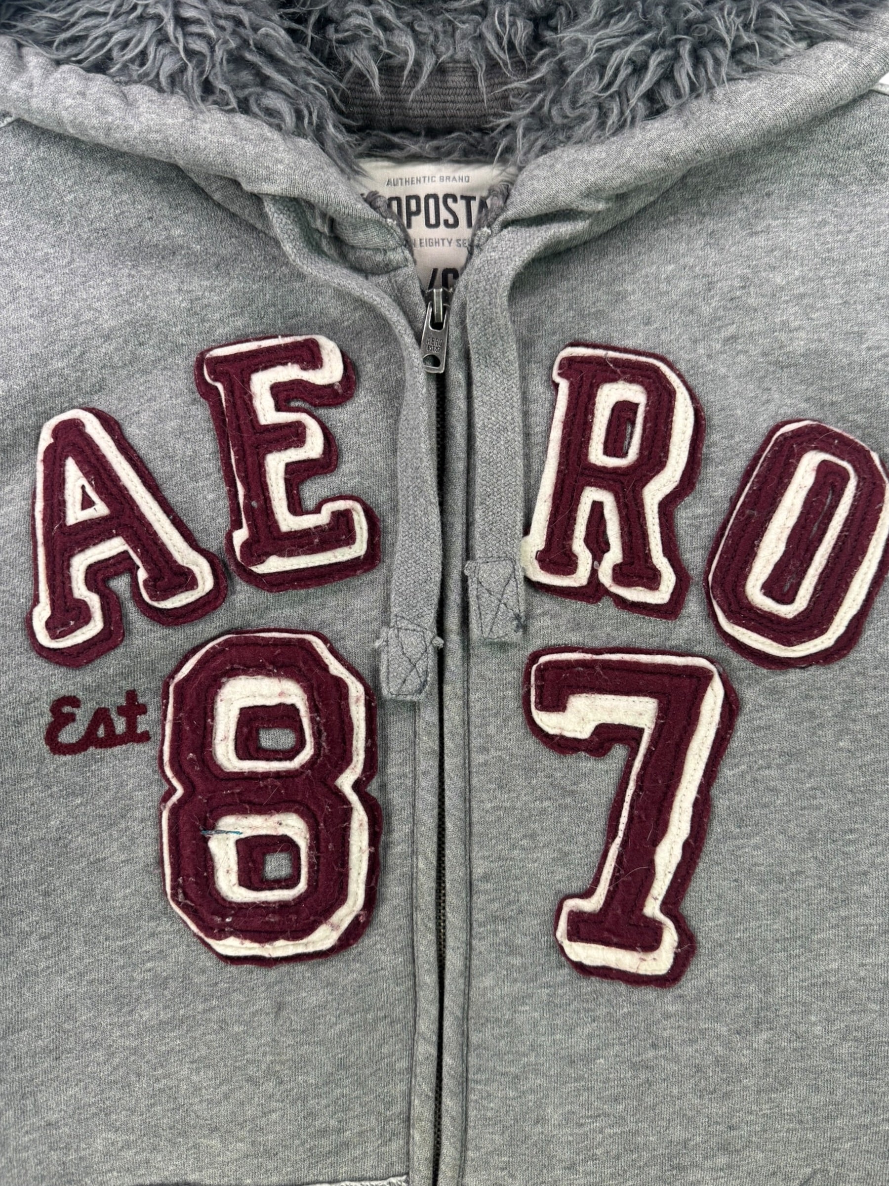 (L) Y2K Grey Aeropostale Faux Fur Lined Hoodie