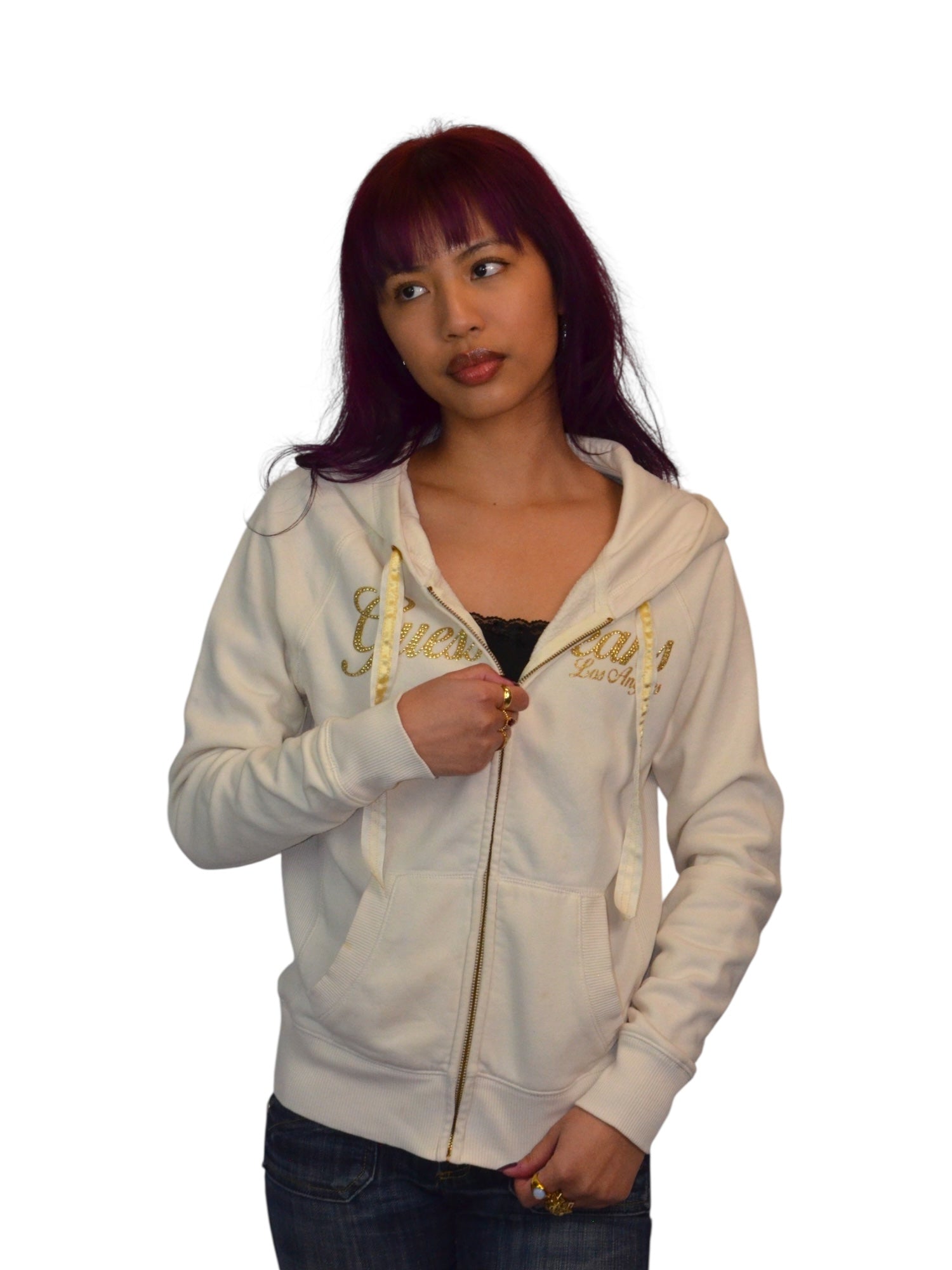 (S/M) Vintage Embellished Guess Zip-up Hoodie