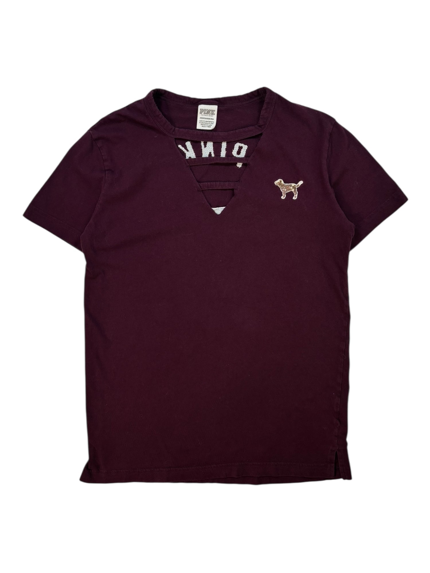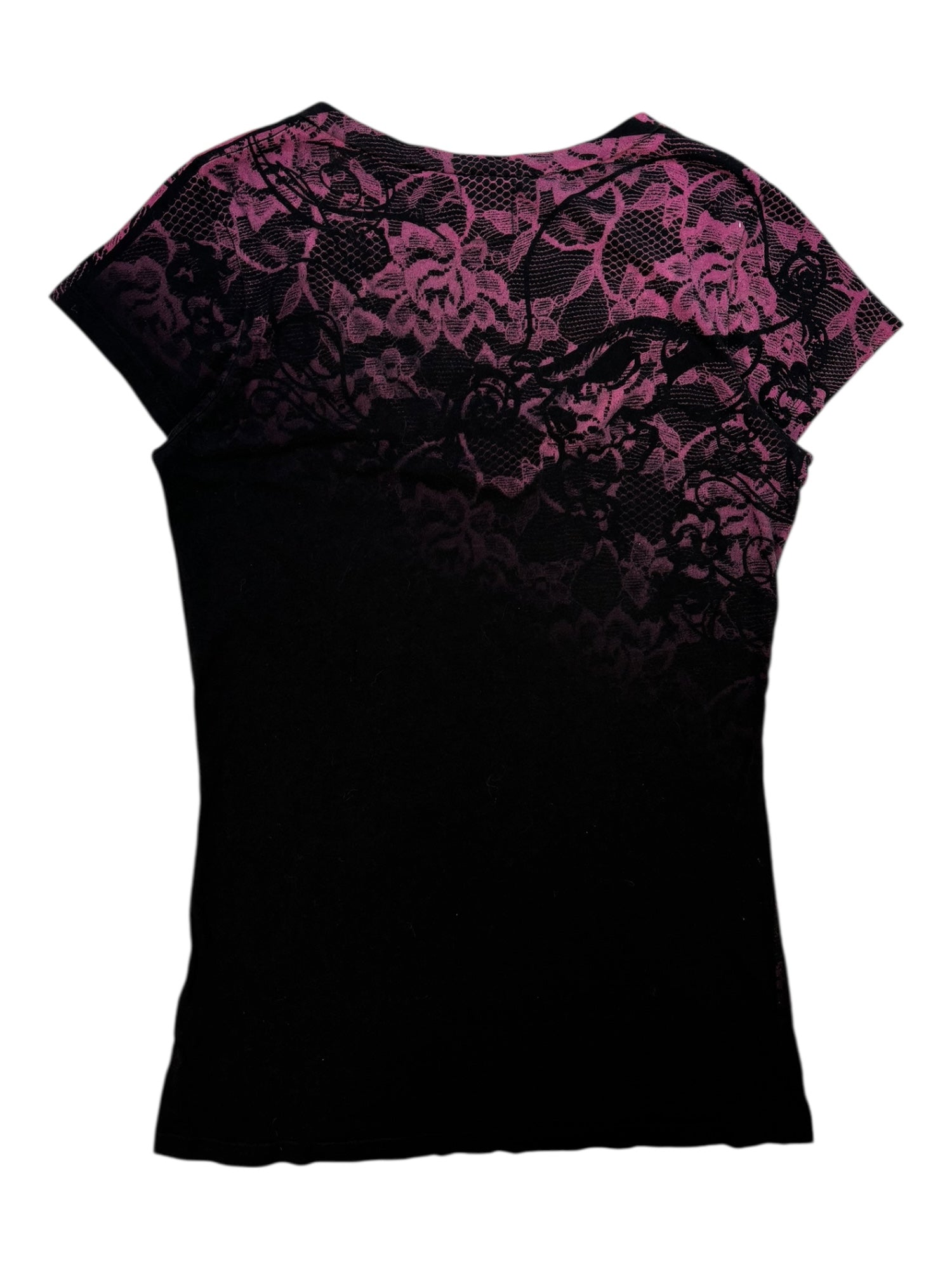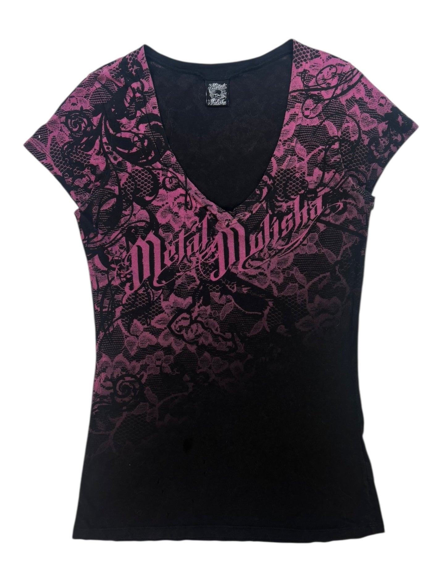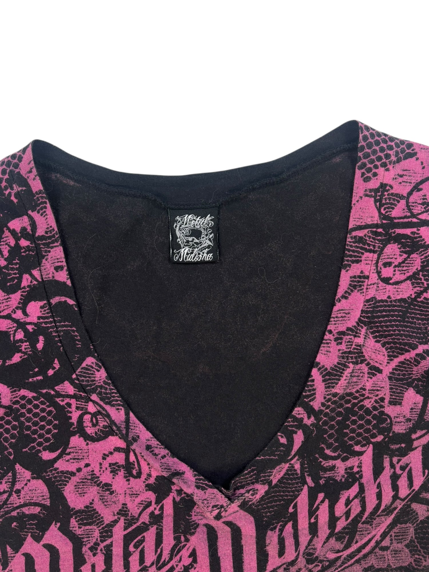 (L) Metal Mulish Vneck Pink and Black Graphic Tee