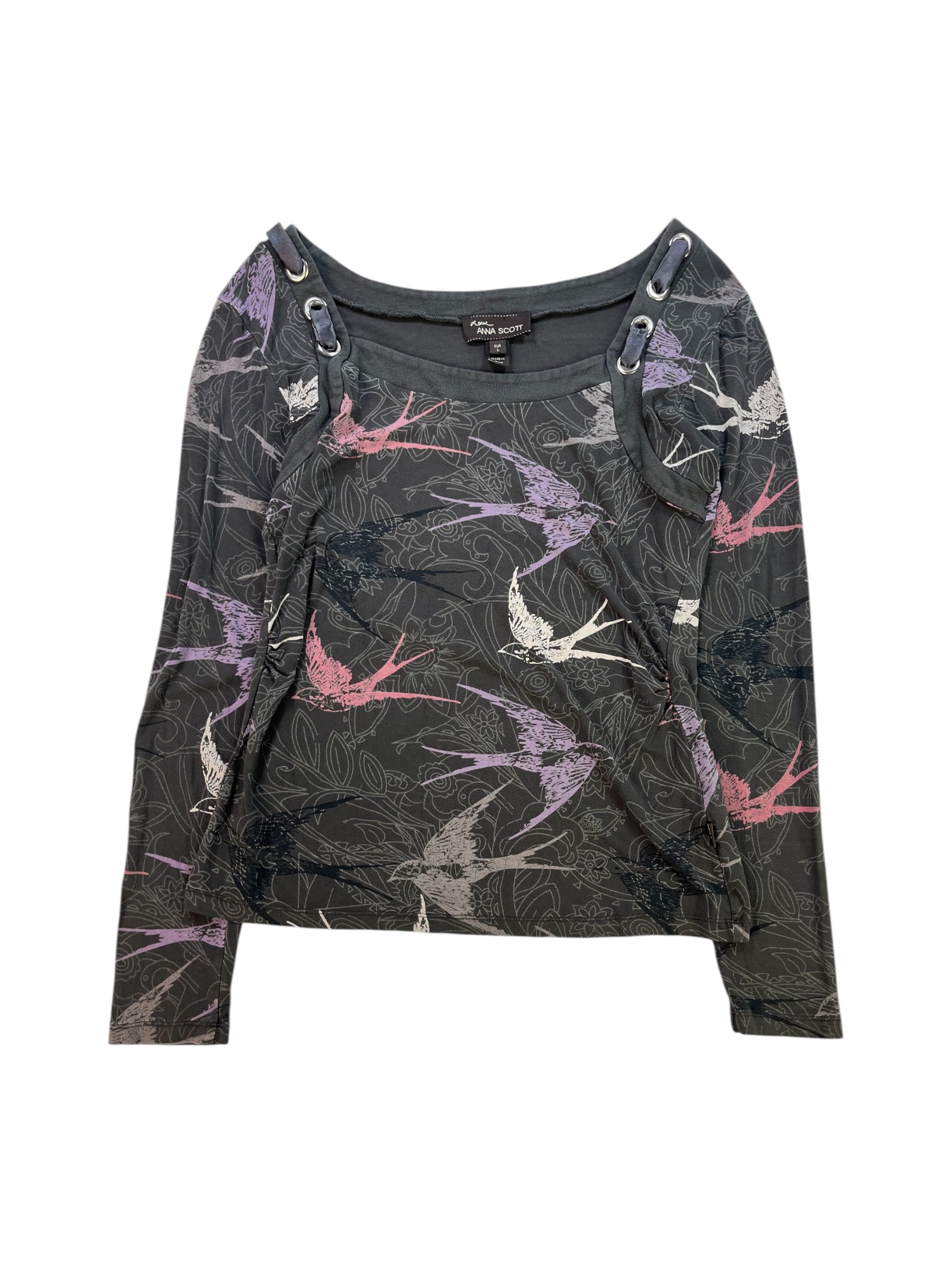 (M) Anna Scott Bird Graphic Long Sleeve Top