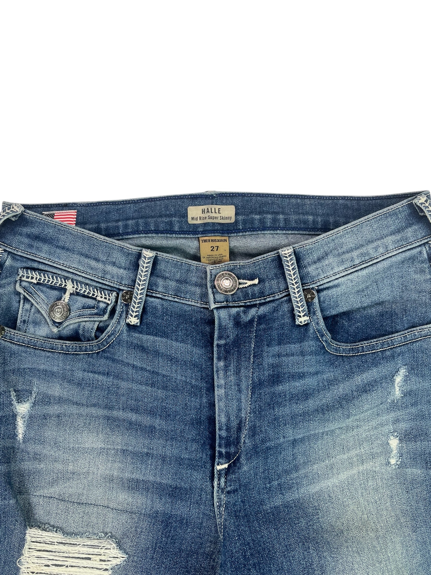 (28) True Religion Skinny Jeans with Pink Sparkle details